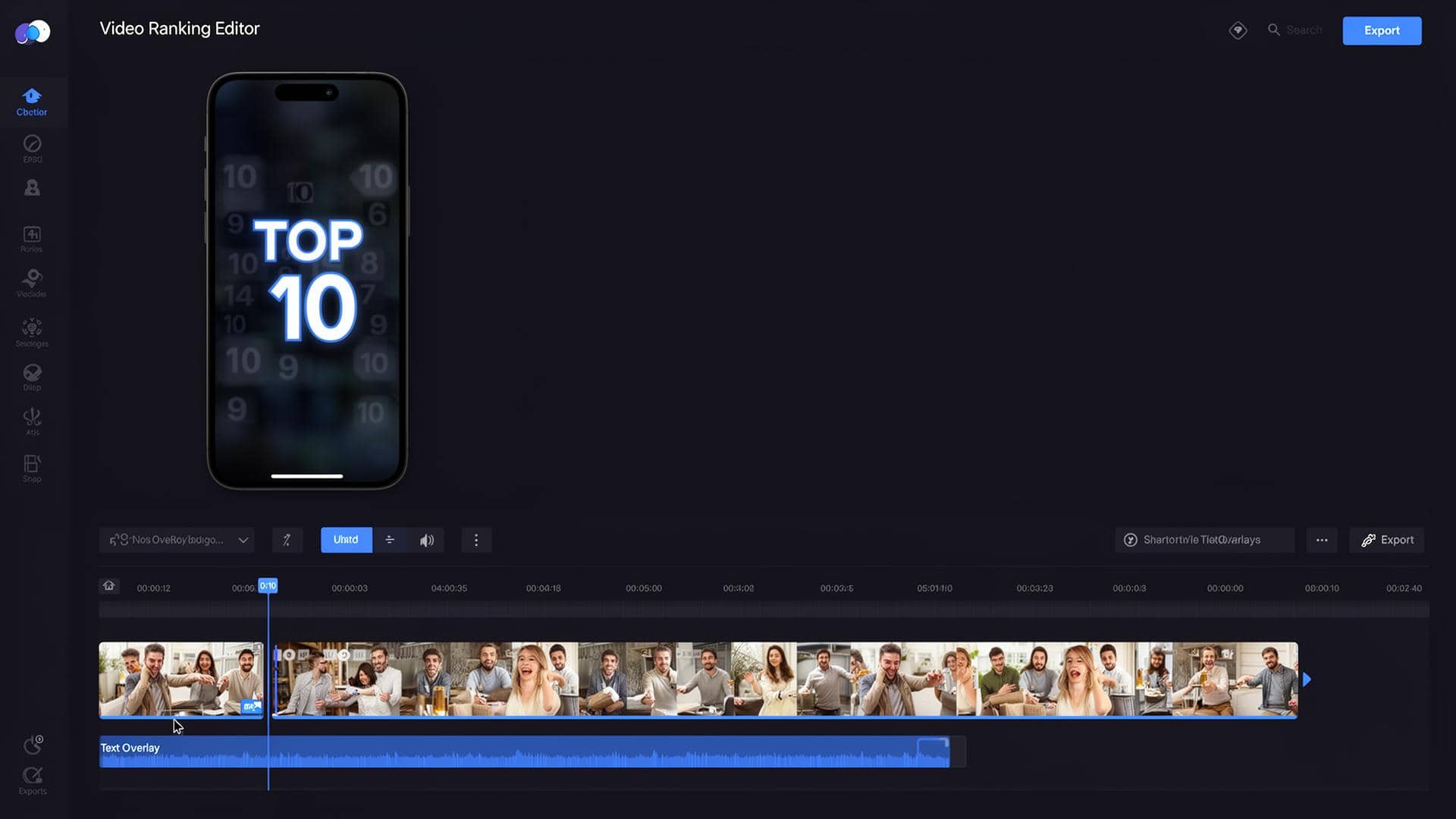 Upload clips or add stock clips, edit your rank text once, and RankClips automatically syncs clip-to-rank switching across the timeline.